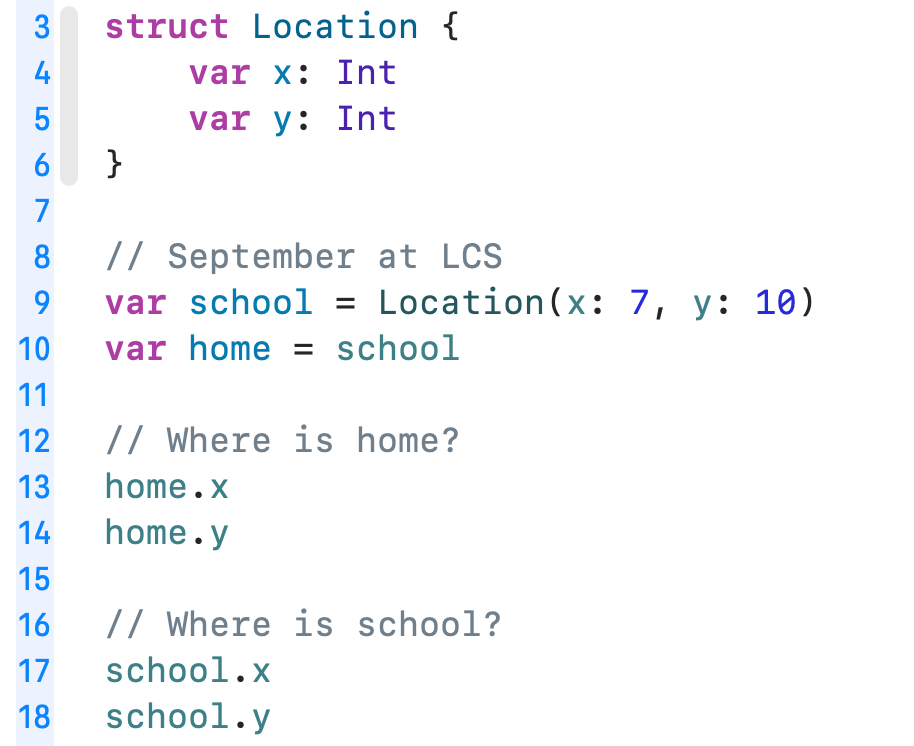 To explore this concept, please create a new Xcode playground named StructuresAndClasses.