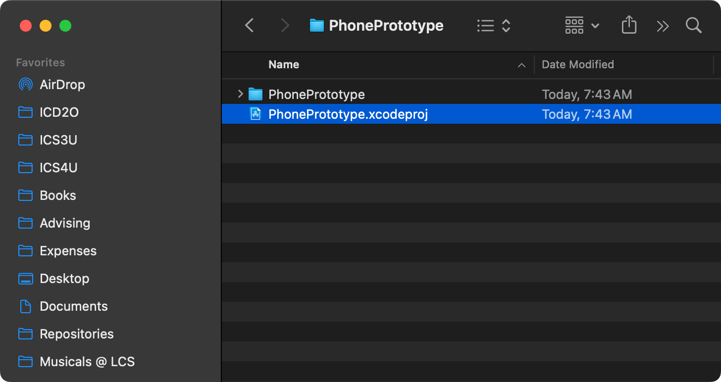 Now move the PhonePrototype folder to your own Computer Science folder, wherever that might be.