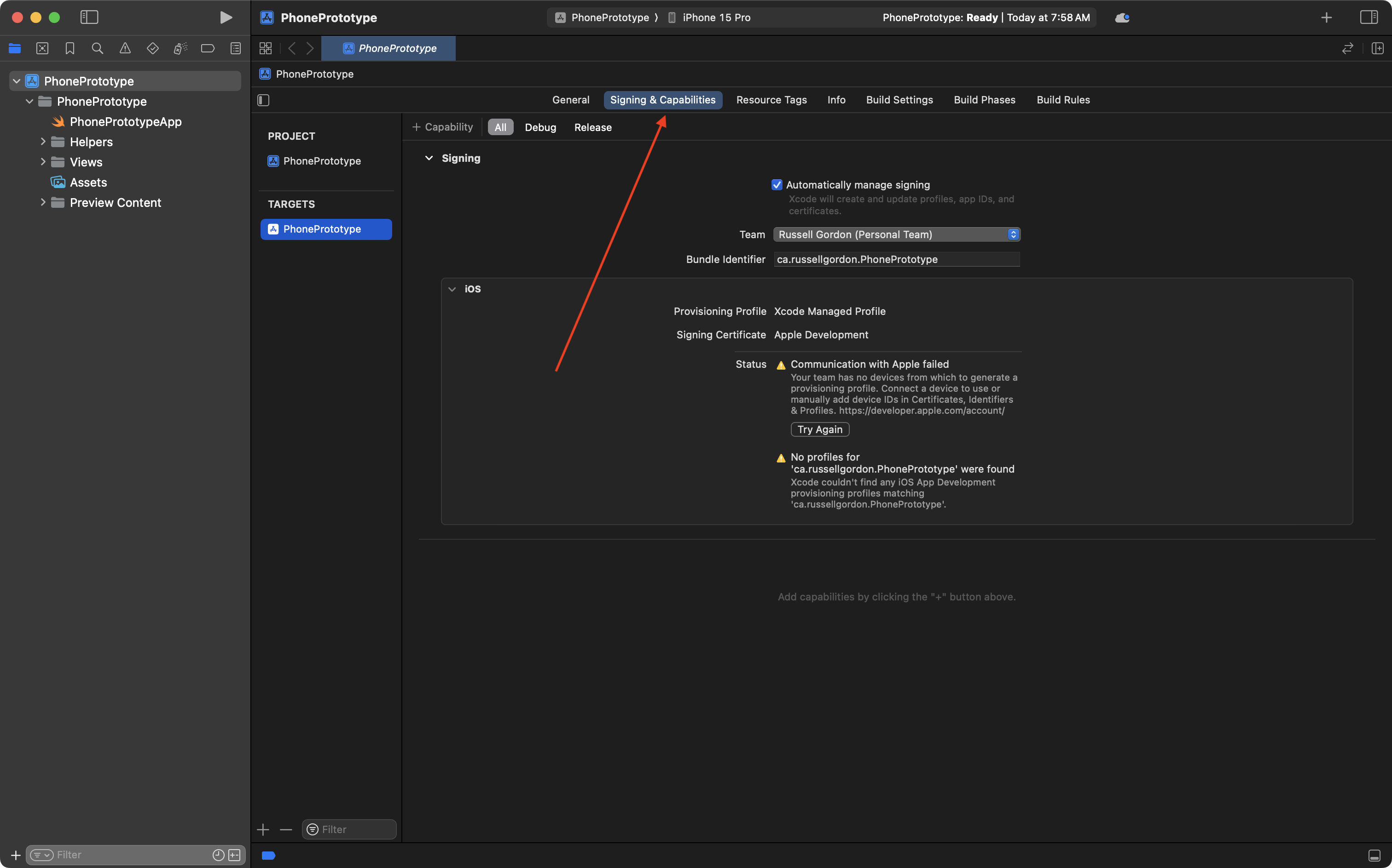 Then double-click to open the folder, and double-click the PhonePrototype.xcodeproj file: